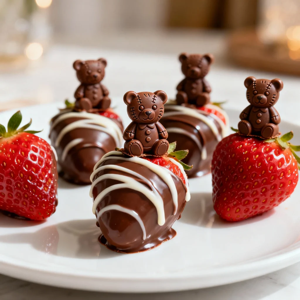 Dip fresh strawberries in chocolate and top each with a miniature chocolate teddy bear. These bite-sized treats are as adorable as they are delicious.