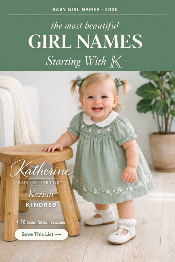 Whether you are drawn to K names because of a family tradition, a cultural connection, honoring someone beloved, or simply because you fell completely in love with that crisp, confident K sound — I have handpicked 50+ of the most beautiful baby girl names starting with K for 2026, organized by style and vibe so you can find your perfect match quickly and easily.