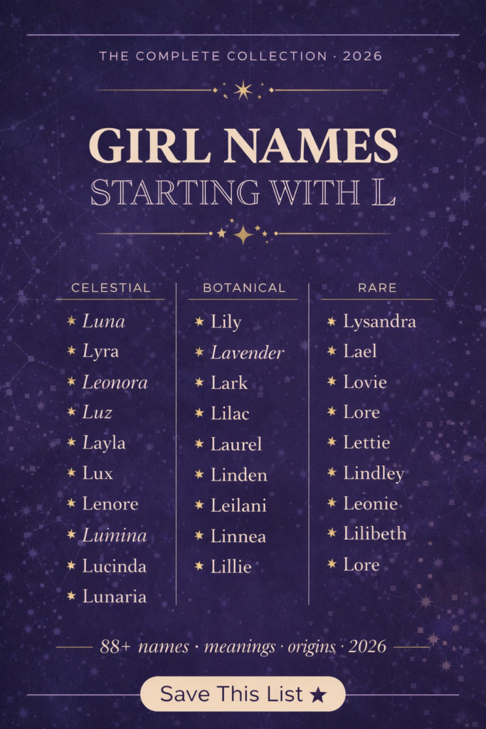 Whether you are drawn to L names because of a beloved family member, a meaningful cultural tradition, or simply because you fell completely and helplessly in love with the soft, lyrical beauty of L sounds — I have handpicked 80+ of the most beautiful baby girl names starting with L for 2026, organized by style and vibe so you can find your perfect match quickly and easily.