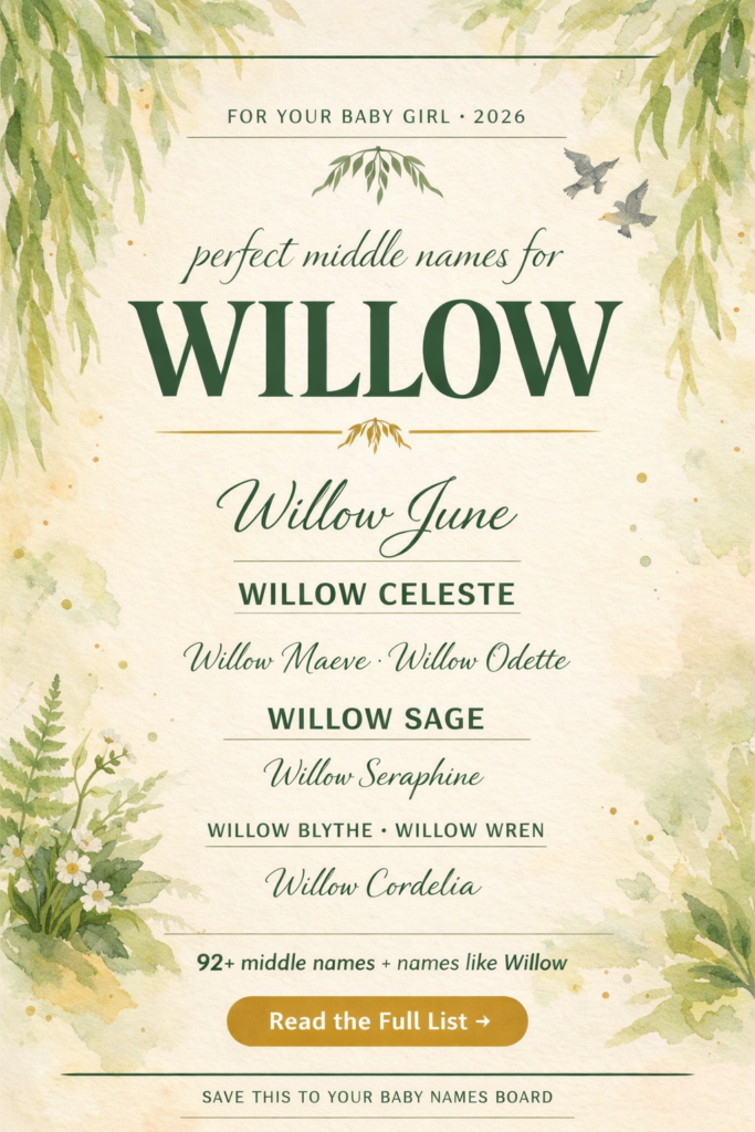 The name Willow is a genuine gift — soft, strong, nature-rooted, and deeply beautiful. Whatever middle name you choose to pair with it, know that you are giving your daughter a first name that already carries the most extraordinary symbolism: the grace to bend without breaking, the strength to survive anything, and the beauty to do it all with elegance.